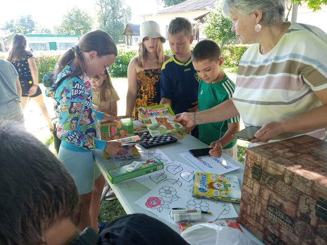 Еженедельно сотрудники отдела по обслуживанию детского читателя организуют в учреждениях культуры и образования города интерактивные площадки и мероприятия. 14 августа организовали зону для детей из средних школ №2,8 и 11 возле главного входа в ГУ «Детский центр культуры «Росток» г.Молодечно». На интерактивной площадке «Читаем. Играем. Развлекаемся» ребята не только отвечали на вопросы сказочной викторины и участвовали в литературных конкурсах, но и играли, развлекались и общались друг с другом.